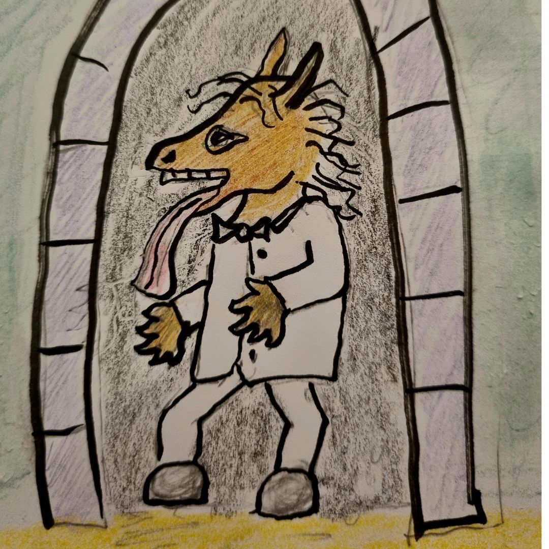 “Bug-EEEAW ger-EEAW off-EEAW” the beast brays at you, brandishing a vicious looking donkeyman club, which you can’t see in the picture, because Gazza forgot to draw it in. You realise that reasoning with such a fiend would be a total waste of time. And therefore, you have to battle him.